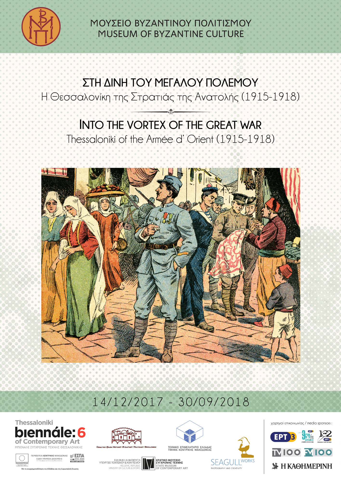 Νέα περιοδική έκθεση με τίτλο «Στη δίνη του Μεγάλου Πολέμου: Η Θεσσαλονίκη της Στρατιάς της Ανατολής (1915-1918) στην αίθουσα περιοδικών εκθέσεων «Ευτυχία Κουρκουτίδου-Νικολαΐδου». Η έκθεση είναι μια παραγωγή του Μουσείου και εντάσσεται στο Κεντρικό Πρόγραμμα της 6ης Μπιενάλε Σύγχρονης Τέχνης Θεσσαλονίκης που διοργανώνεται από το Κρατικό Μουσείο Σύγχρονης Τέχνης και συγχρηματοδοτείται από την Ελλάδα και την Ευρωπαϊκή Ένωση (Ευρωπαϊκό Ταμείο Περιφερειακής Ανάπτυξης).
